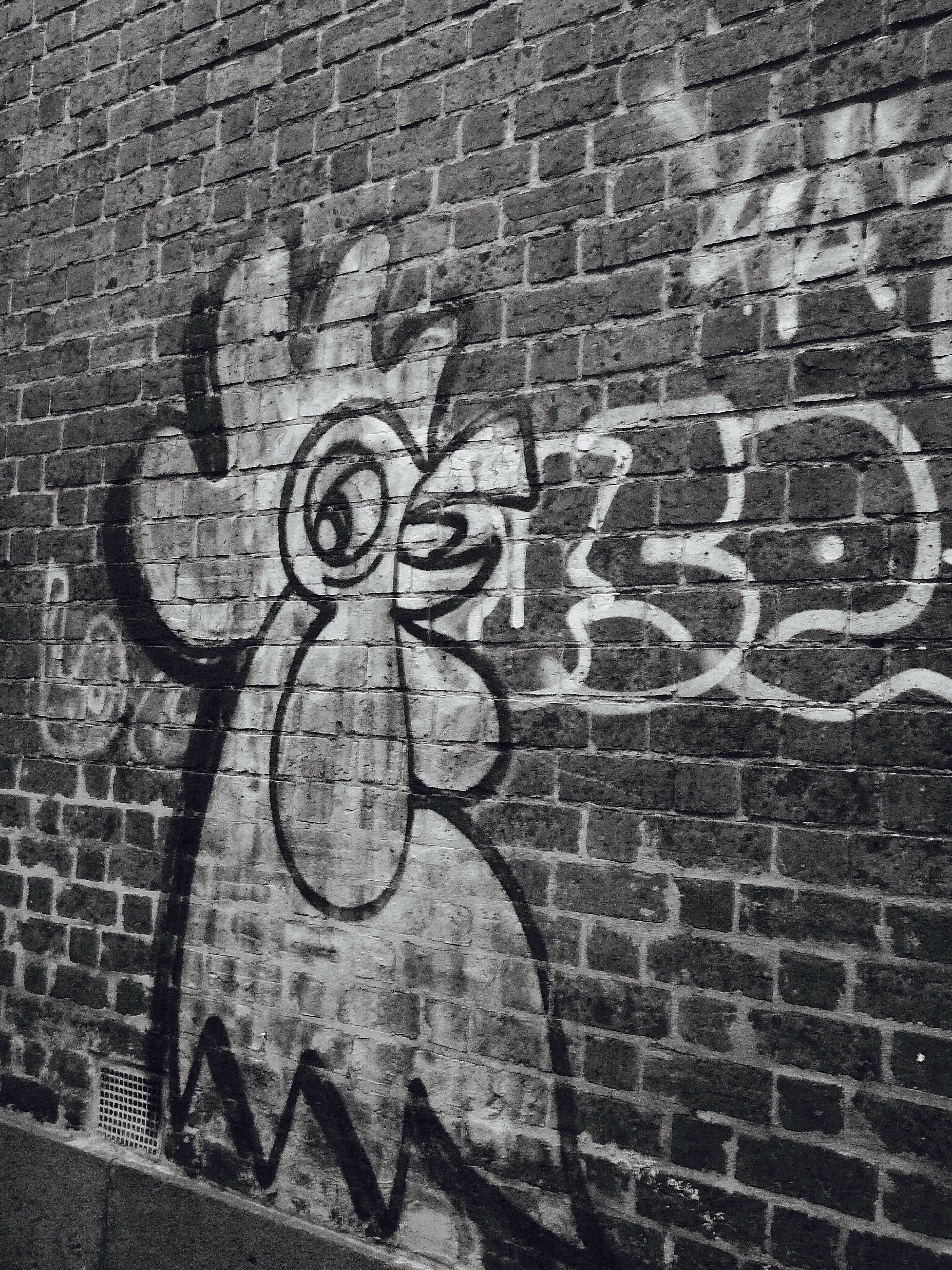 This photo was taken during a walk around my neighbourhood. I normally like shooting street art in colour but this one worked well in black and white, especially as it reveals the texture of the bricks.