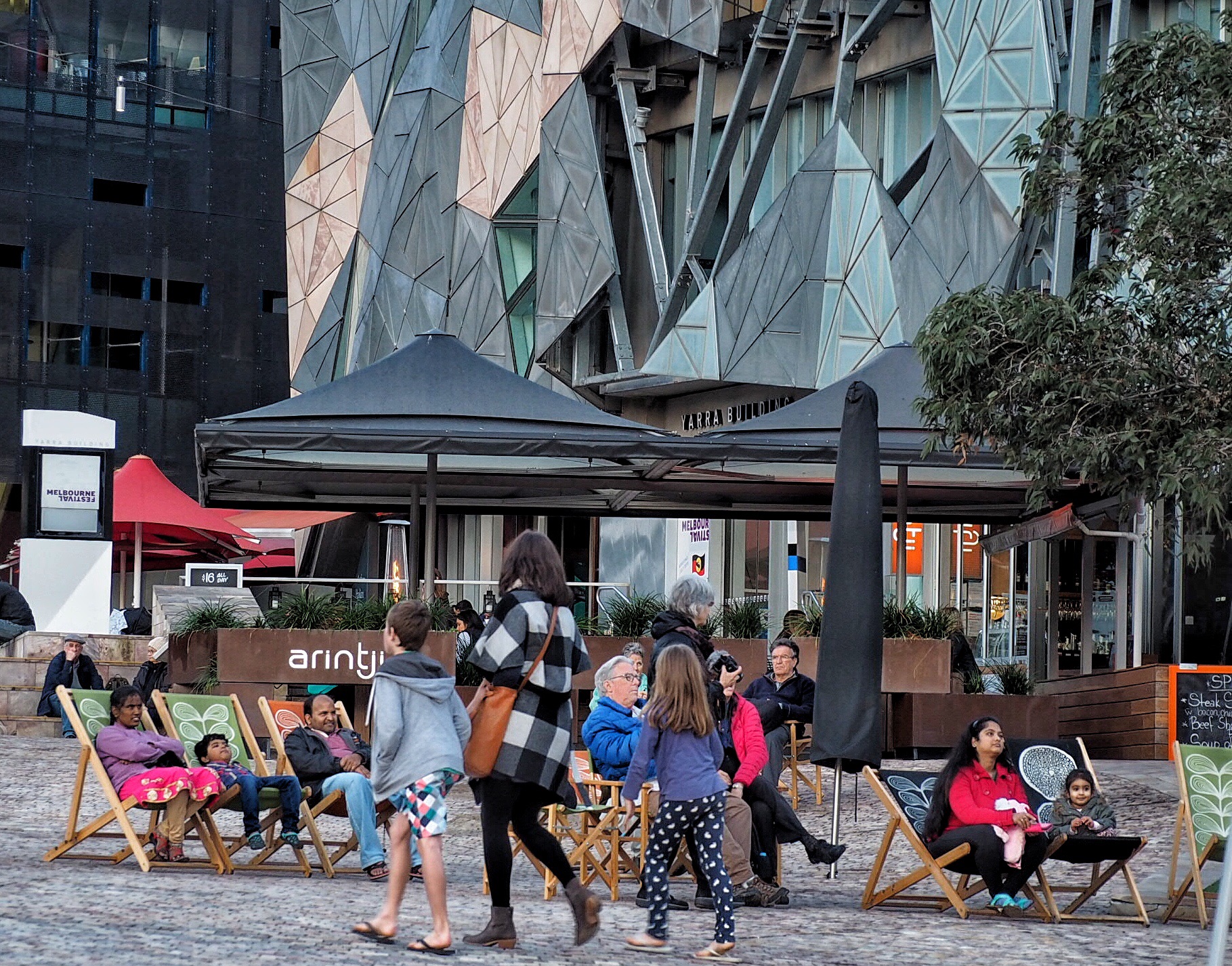 Deck chairs in Fed Square